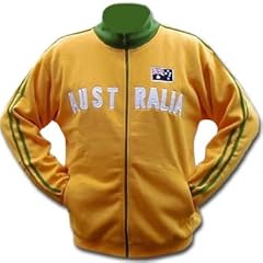 This Australia tracktop in the classic Oz colours of green and gold is available for immediate delivery. Fully embroided on the front with 'AUSTRALIA' and the national flag, this tracktop is 70% cotto